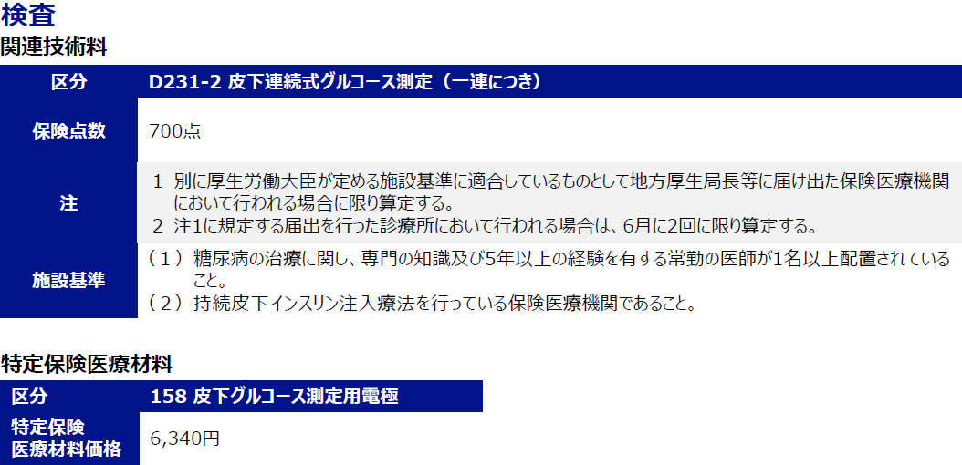 ⽪下連続式グルコース測定(⼀連につき)D231-2
