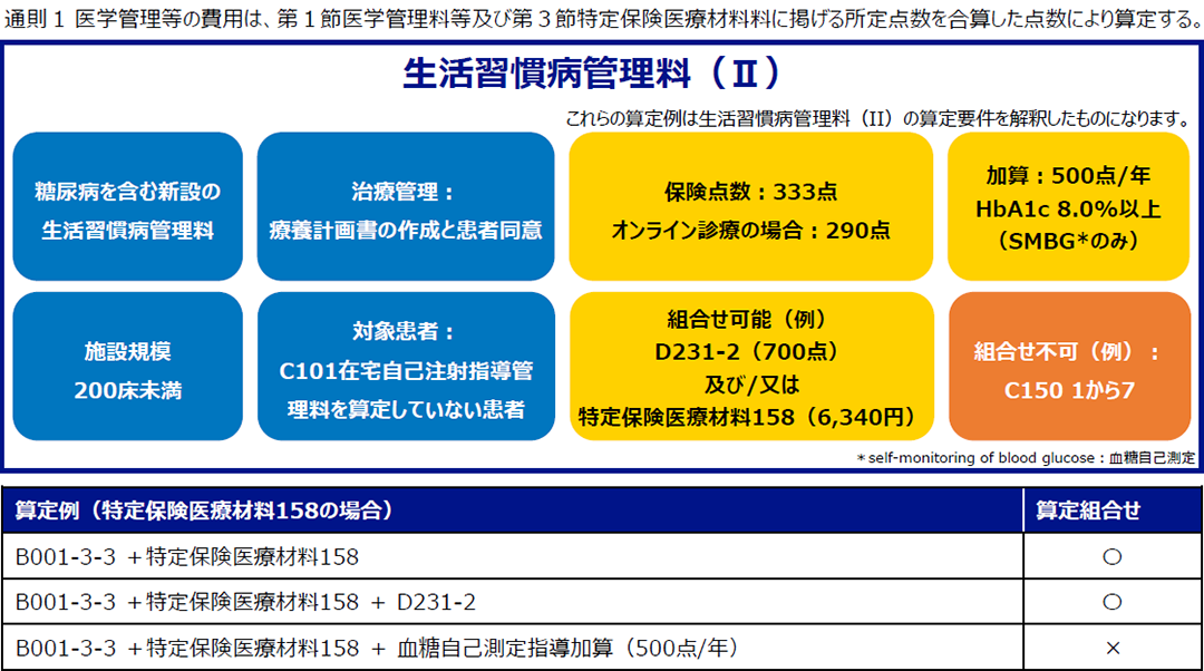 ⽣活習慣病管理料(Ⅱ)と特定保険医療材料158の算定について