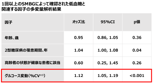 1回以上のSMBGによって確認された低血糖と関連する因子の多変量解析結果