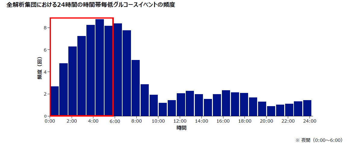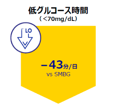 - 副次評価項目:TBRレベル2の低グルコース状態であった時間、夜間(0:00~6:00)低グルコースの頻度、夜間のTBRレベル2 など