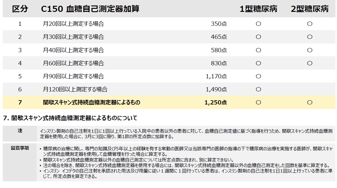 保険コード (2025年3月時点) 血糖自己測定器加算 C150-7